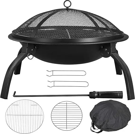 - Cooking Grate & Carry Bag Included: Want to cook on your patio or when camping? This round firepit includes a food-grade cooking grate and a carry bag, saving you the hassle of buying extra accessories for cooking, storage, and carrying