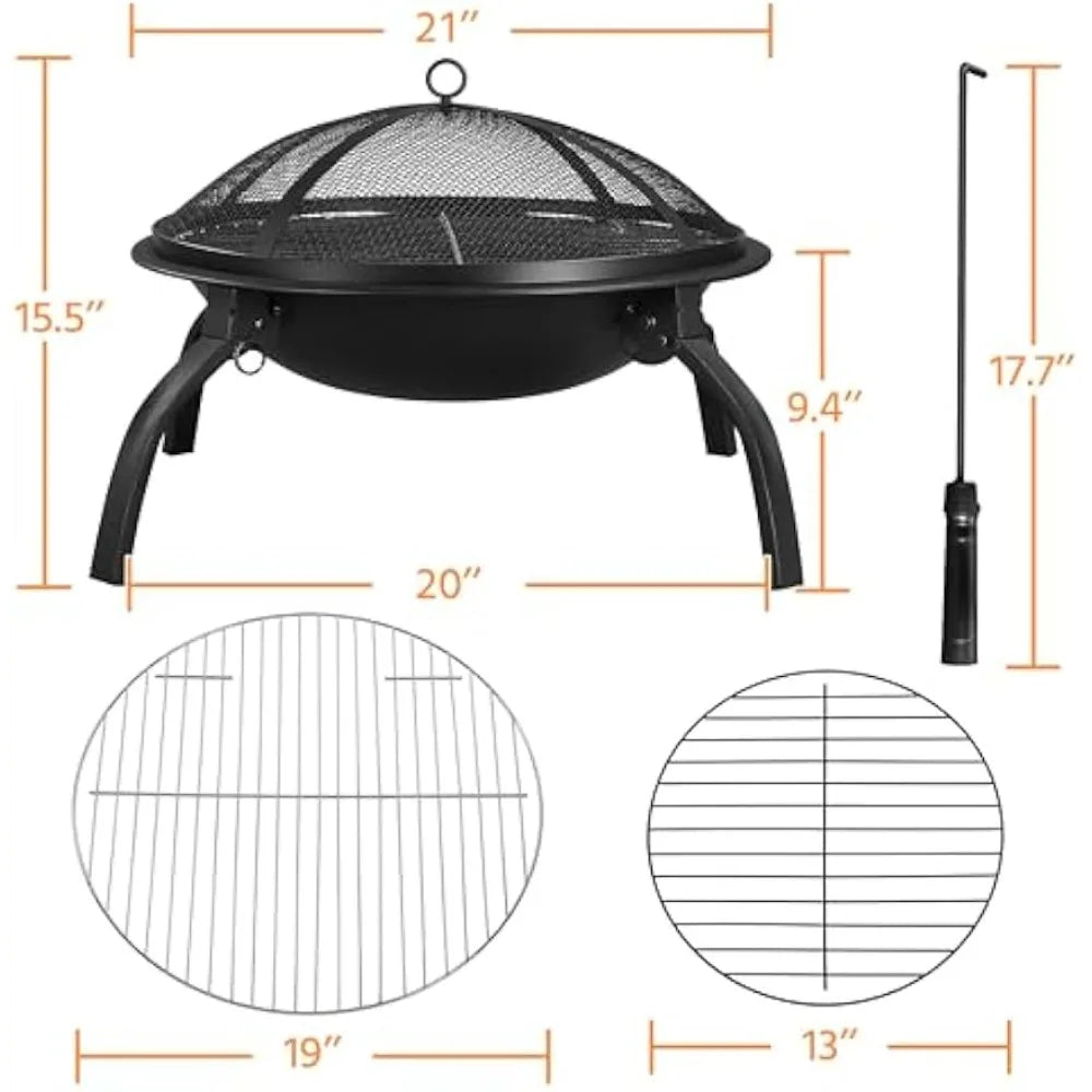 - Small, Lightweight But Practical: Thanks to its lightweight design (weighs 8.7 lb) and foldable legs, this 21 inch fire pit is easy to move around your yards/porches/patios after fully assembled, and is convenient to fold and carry in a compact size for camping trips or beach parties