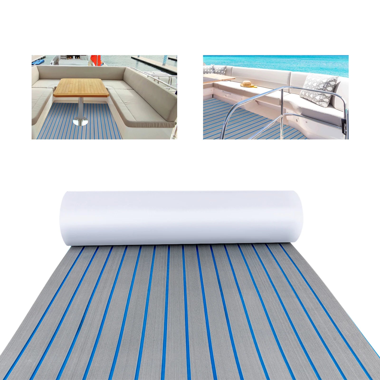 240*60cm/95*24in 240*90cm/95*35.5in Boat Flooring EVA Foam Decking Sheet | 6mm Thick Faux Teak Marine Waterproof Anti-slip Mat | Marine Carpet Seating Non-Slip Self-Adhesive Pad DIY Cuttable for Motorboat RV Yacht Kayak Swimming Pool (Gray + Blue stripes)