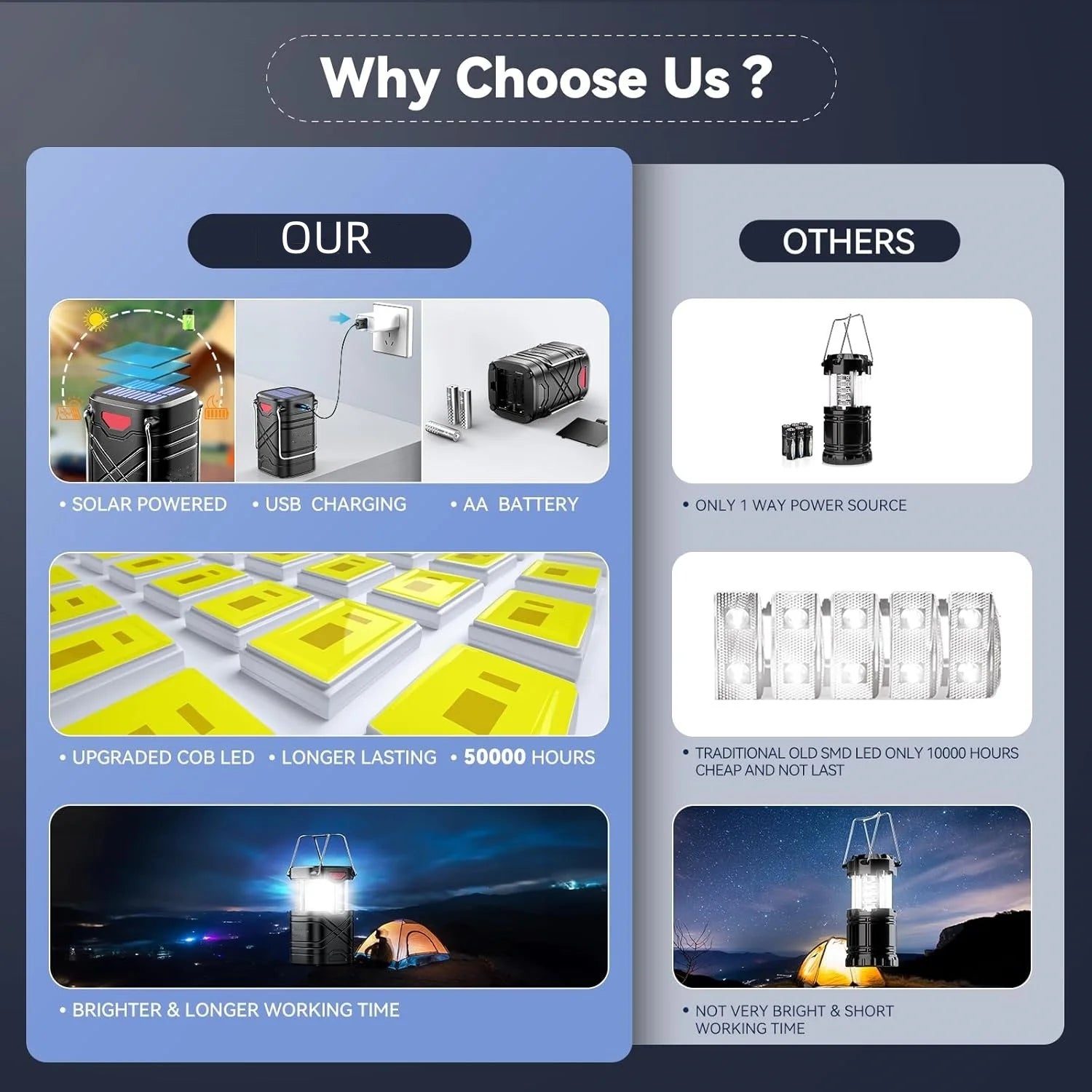 4 Pack Rechargeable Camping Lights - Solar/Battery LED, 3 Modes & USB for Outdoor/Emergencies/Hurricanes - Gift