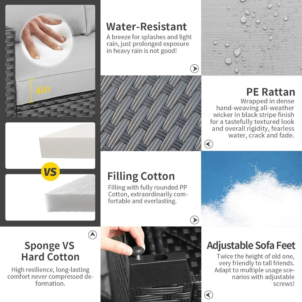 - Assembly and Maintain: the patio conversation sets are packed in 4 boxes, with clear instructions and all necessary hardware for speedy, smooth assembly, also assembly demo video is available; with the waterproof covers, fearless dust, rain, and sun, superbly ensure to last a long time