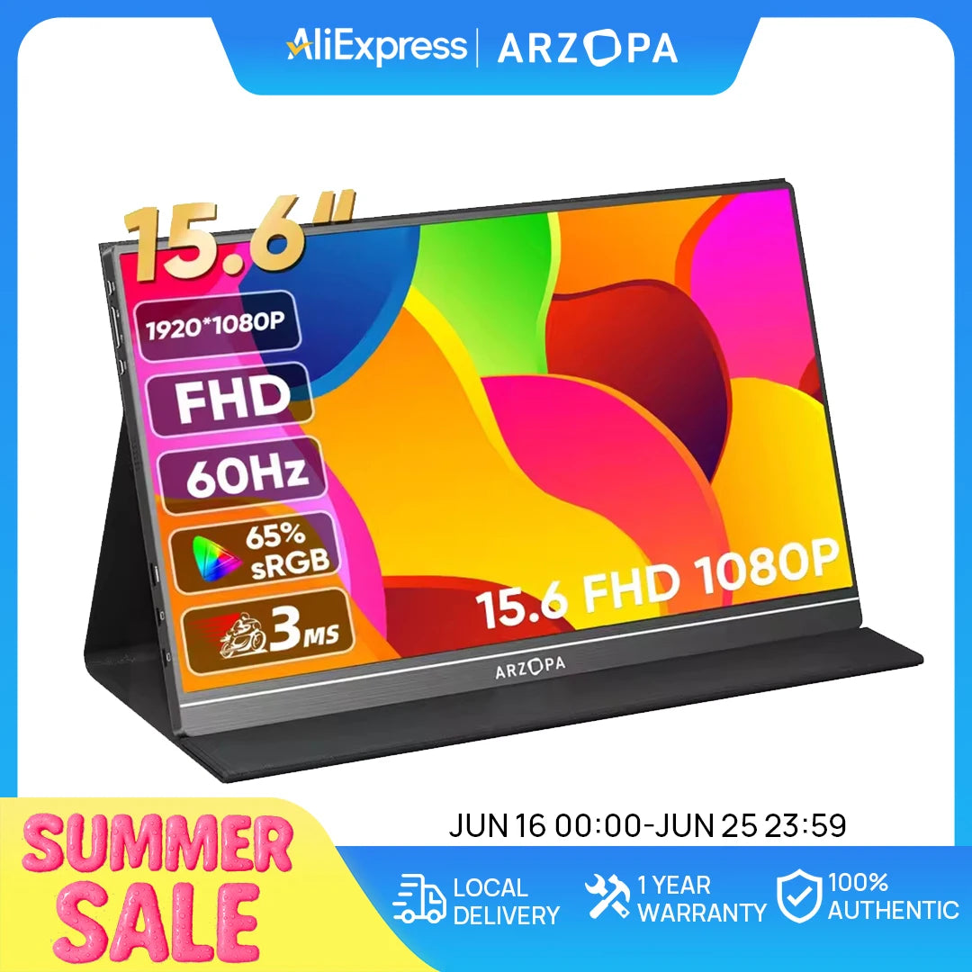 ARZOPA 1080P Portable Monitor 15.6 inch Monitors for Laptop MAC Switch Xbox Phone ps4 PC USB C HDMI-Compatible Computer Display