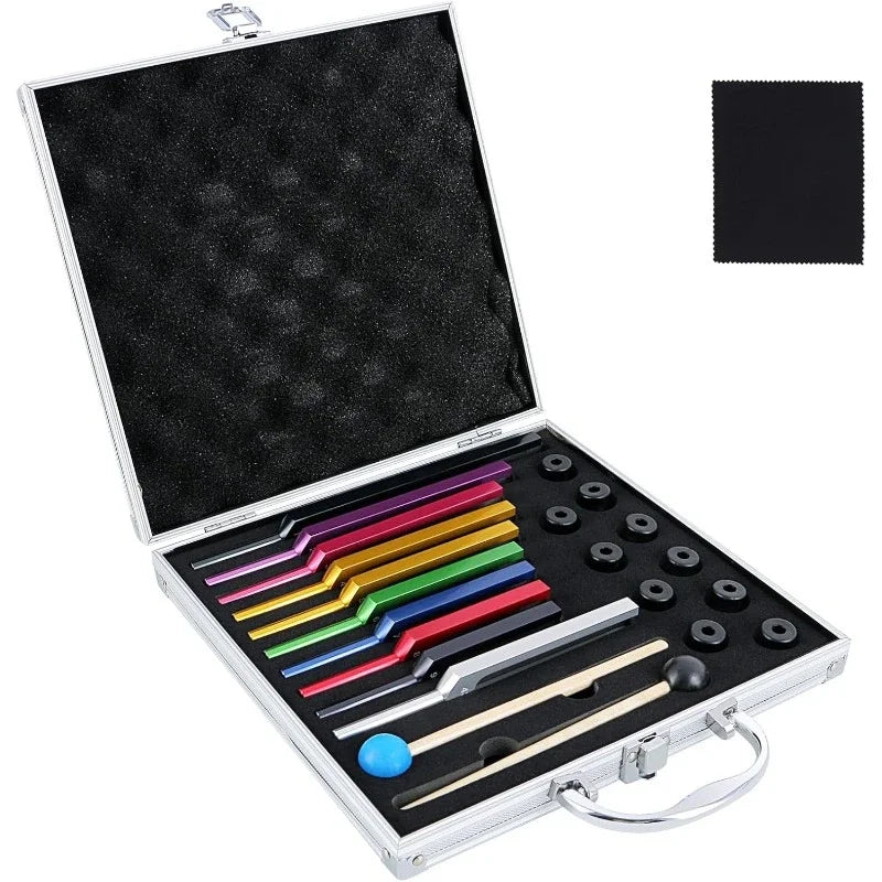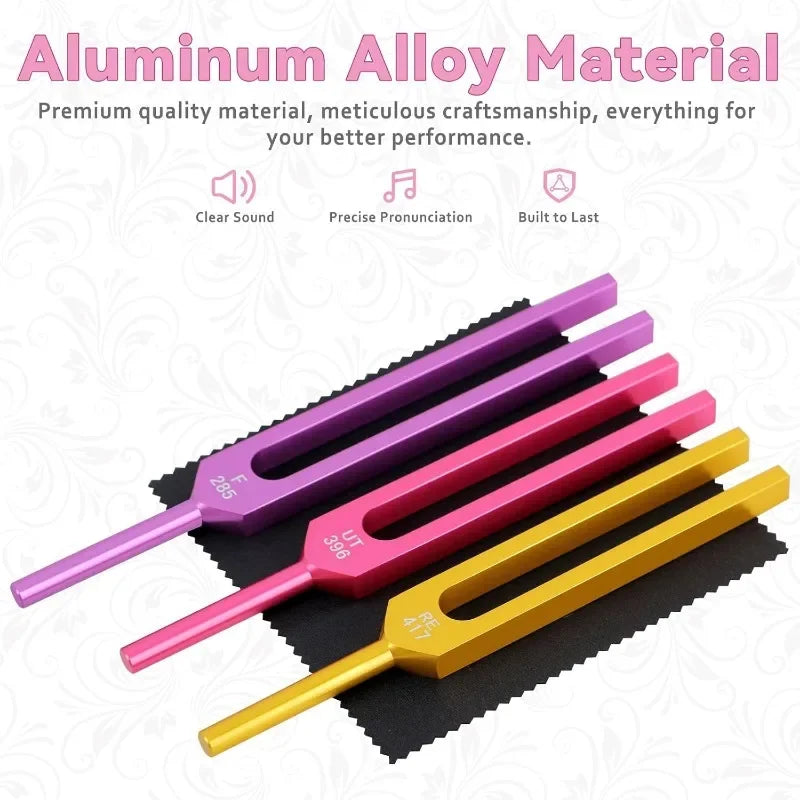 High Quality Aluminum Material:tuning fork set is crafted from high quality aluminum alloy material, ensuring longer sound duration and precise frequency. Perfect for tuning needs in the tuning fork category