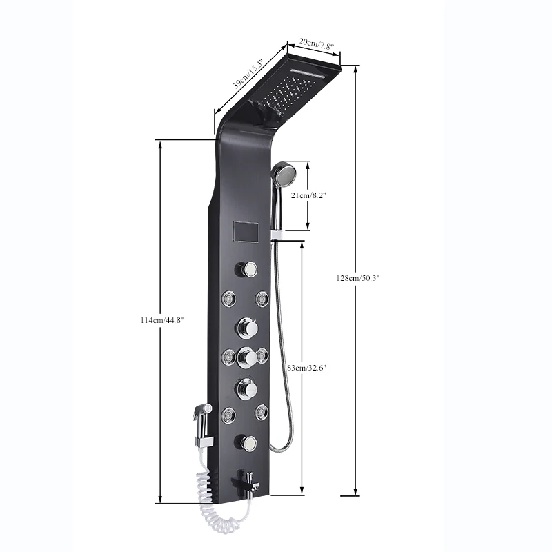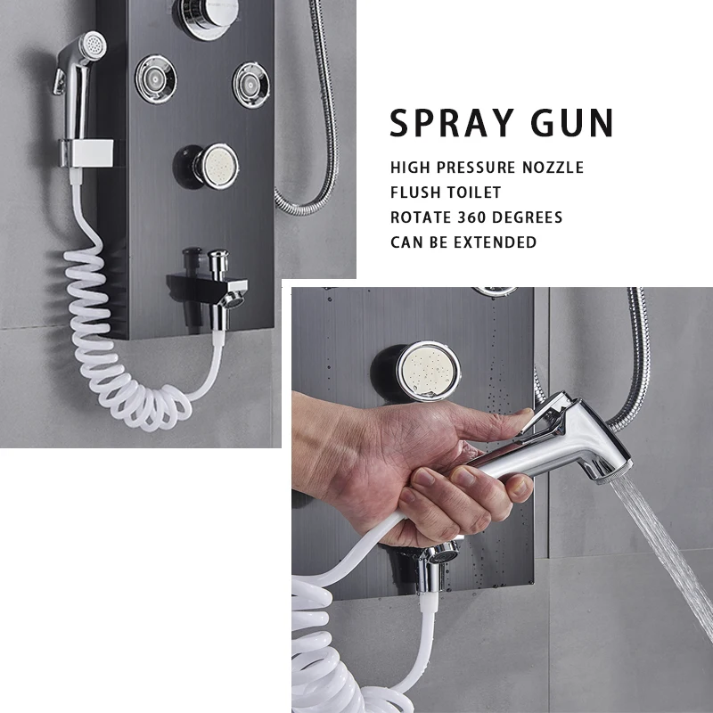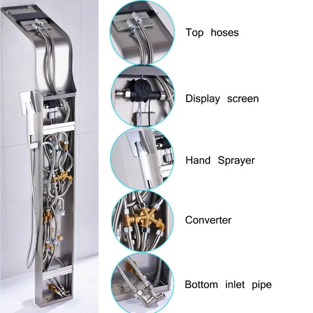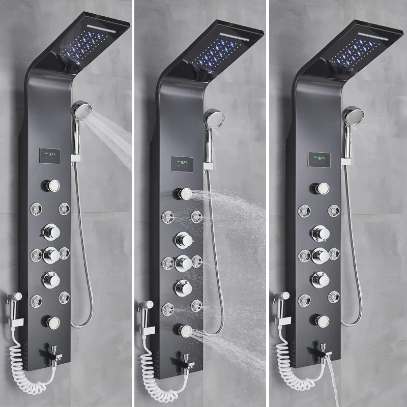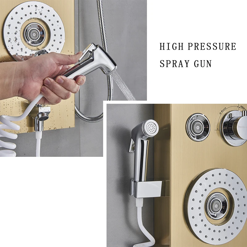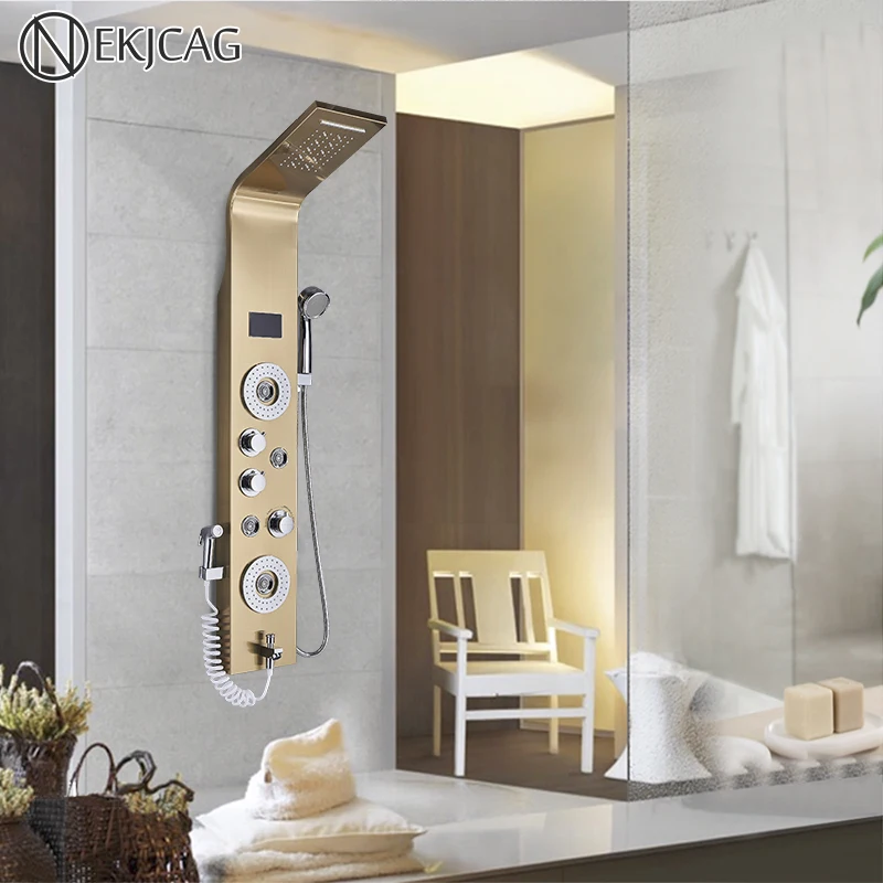 Golden LED Blue Light Bathroom Shower System With Temperature Display Multifunctional Massage Shower Column Waterfall Rainfall