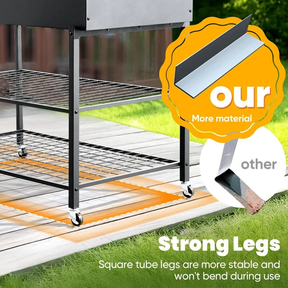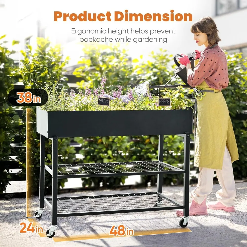KING BIRD Raised Garden Bed with Legs & Double-Layer Storage Shelf, Galvanized Elevated Planter Box with Lockable Wheels for Bac