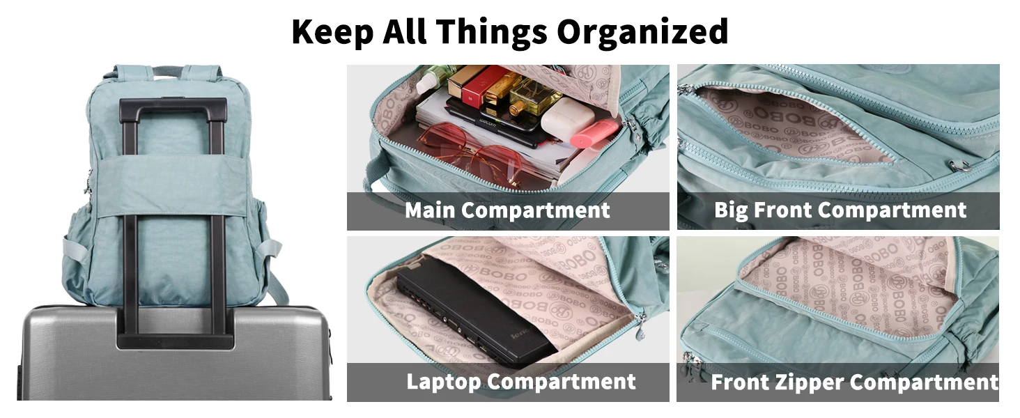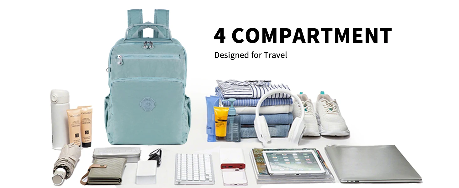"Expandable 30L capacity with 4 compartments, including a padded laptop sleeve (fits 15.6" devices), keeps travel essentials secure and neatly separated."