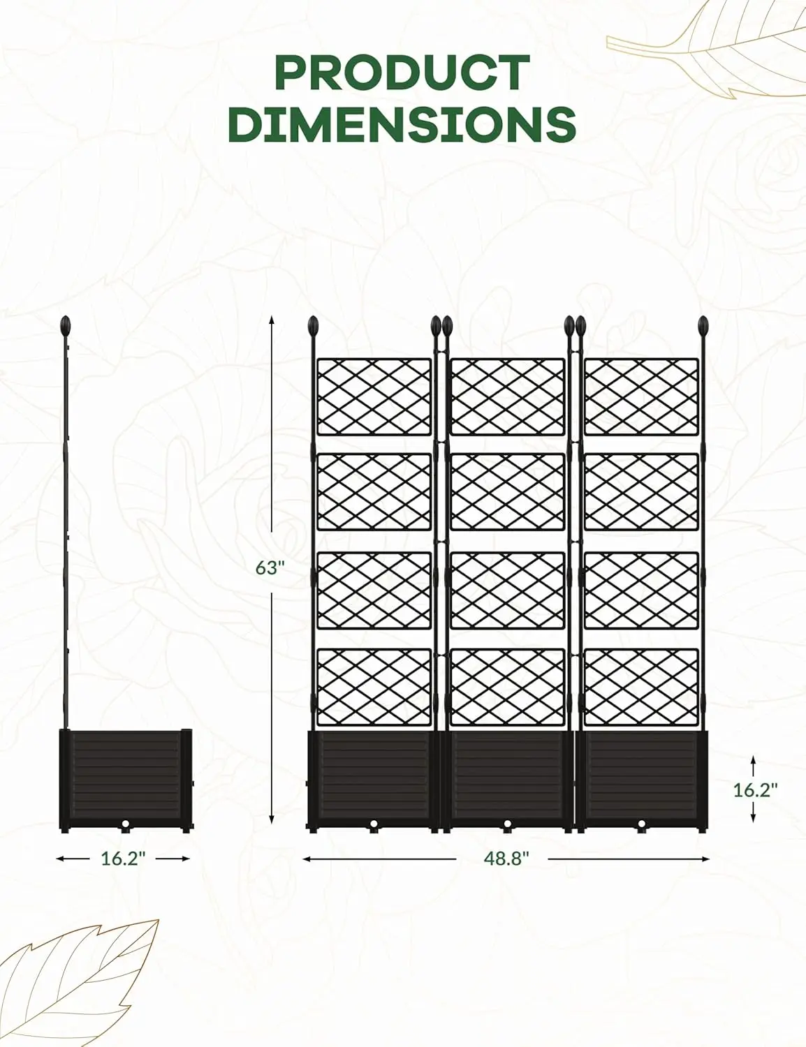Multiple Usage: Trellis planter box with adds a touch of sophistication and elegance to any outdoor setting, complementing various garden and outdoor decor styles. The trellis design allows you to cultivate your climbing plants and herbs easily, providing ample space for them to grow vertically.