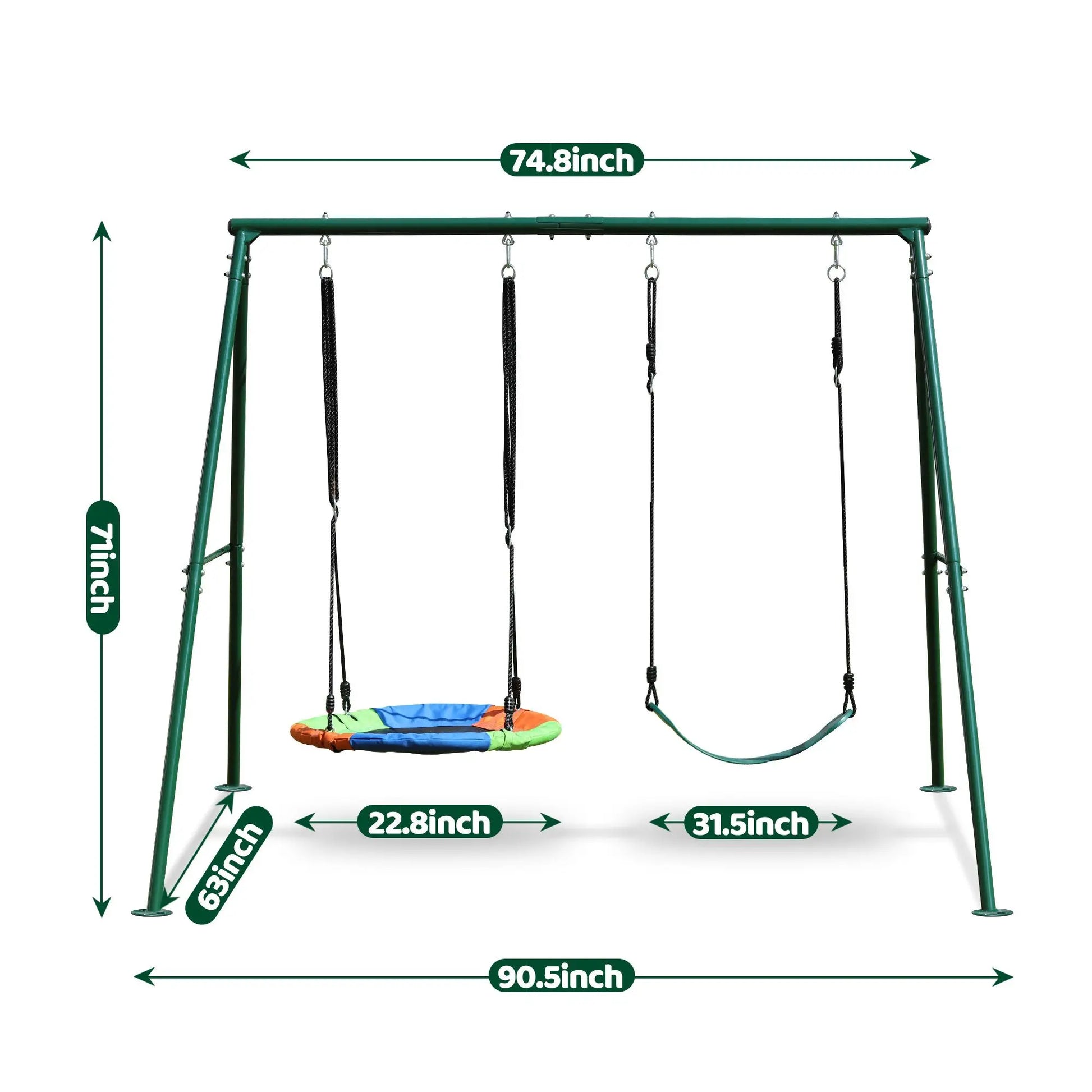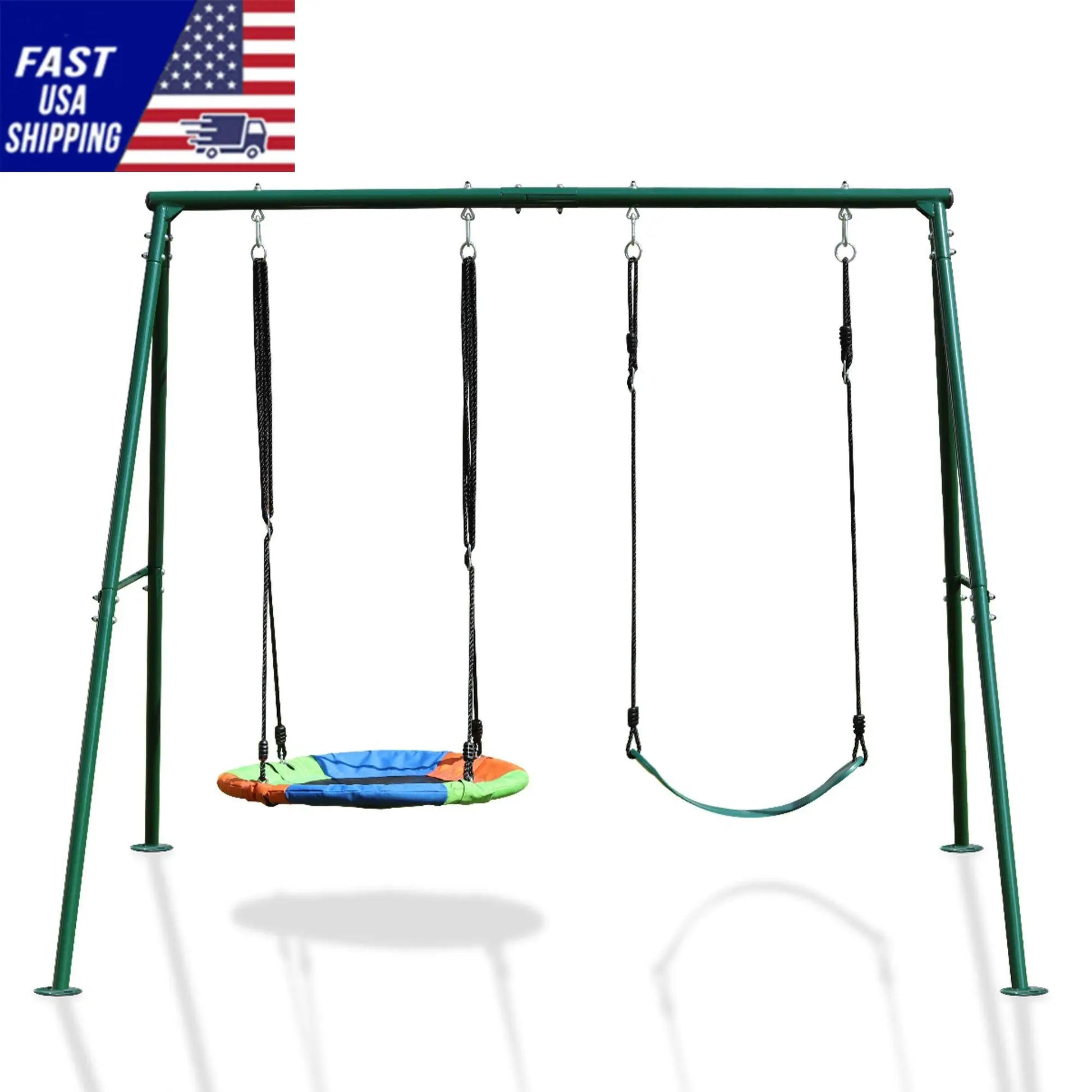 Twice the Fun, Twice the Play – This swing set includes a 32" saucer swing and a belt swing seat, allowing two children to swing together, making it the perfect addition for fun and shared playtime.
