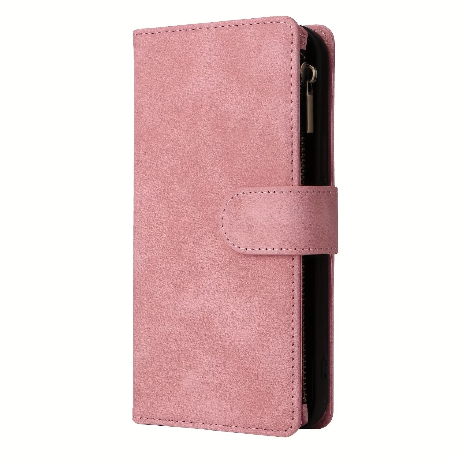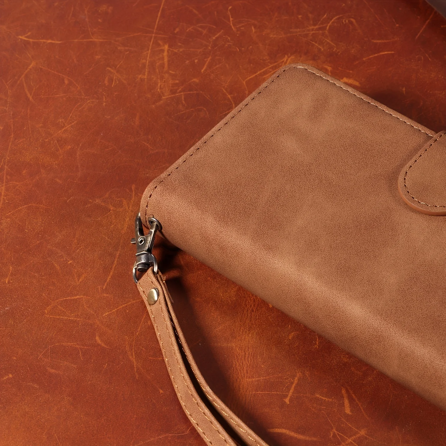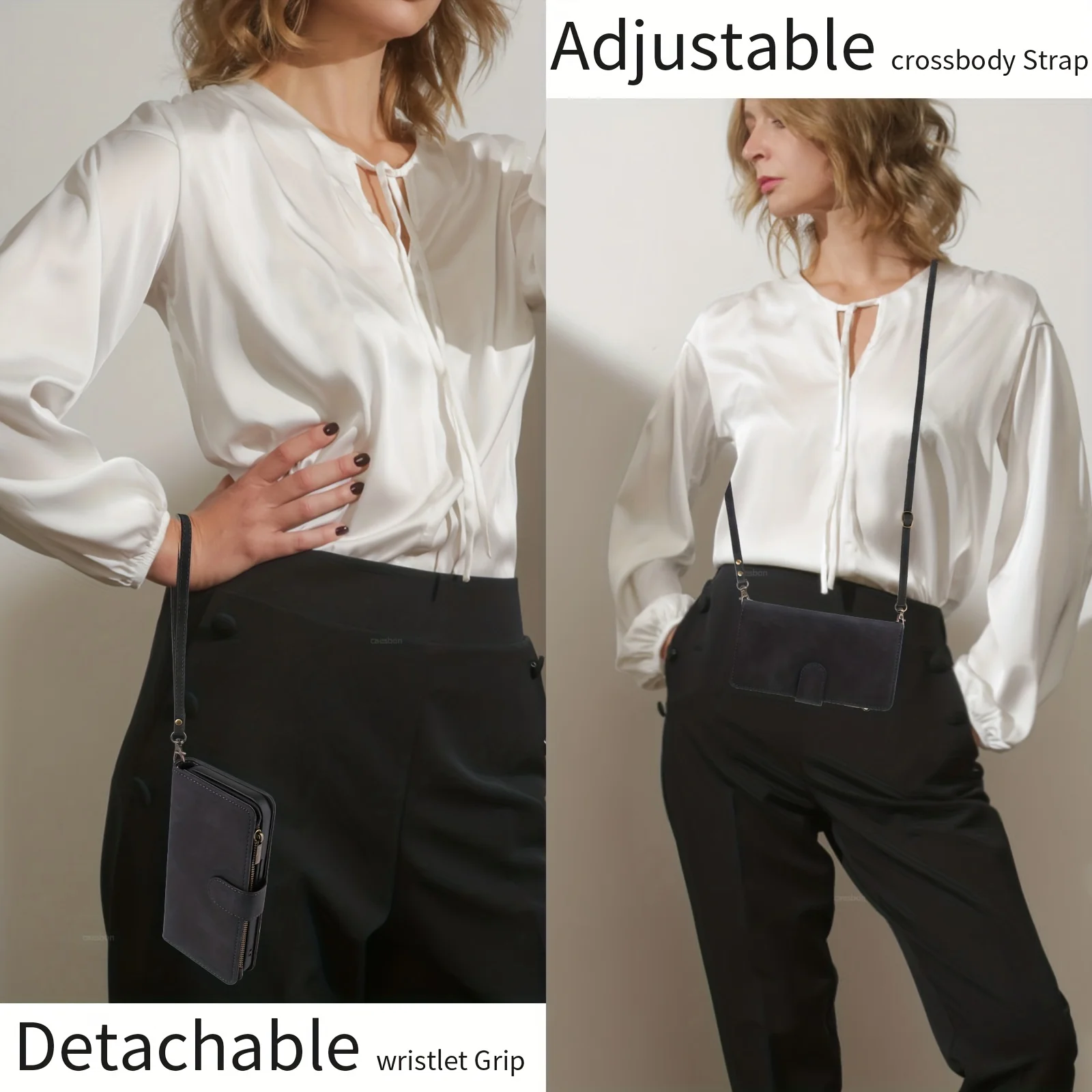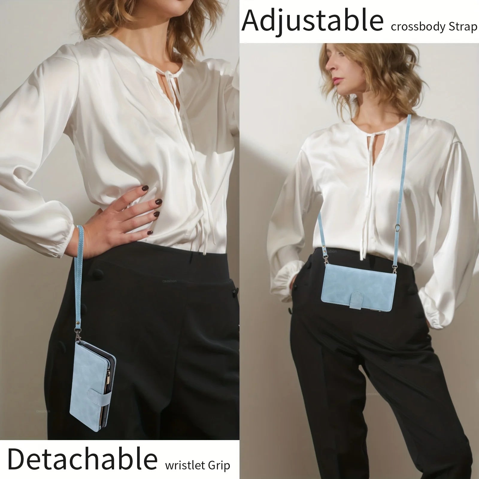 Wallet Case For Women, RFID Blocking Card Holder, PU Leather Flip Phone Case With Crossbody Strap Wristlet Kickstand For 15/15p