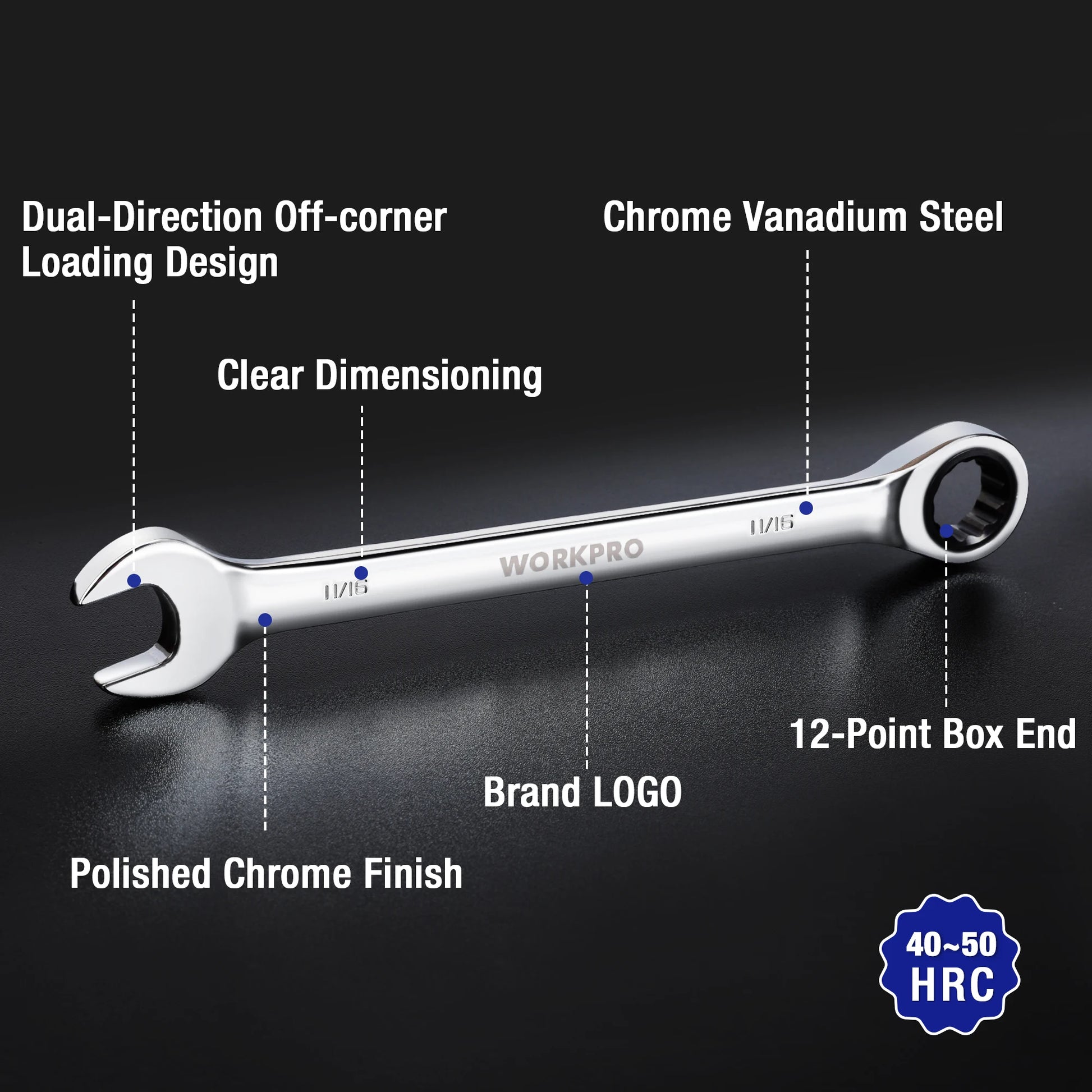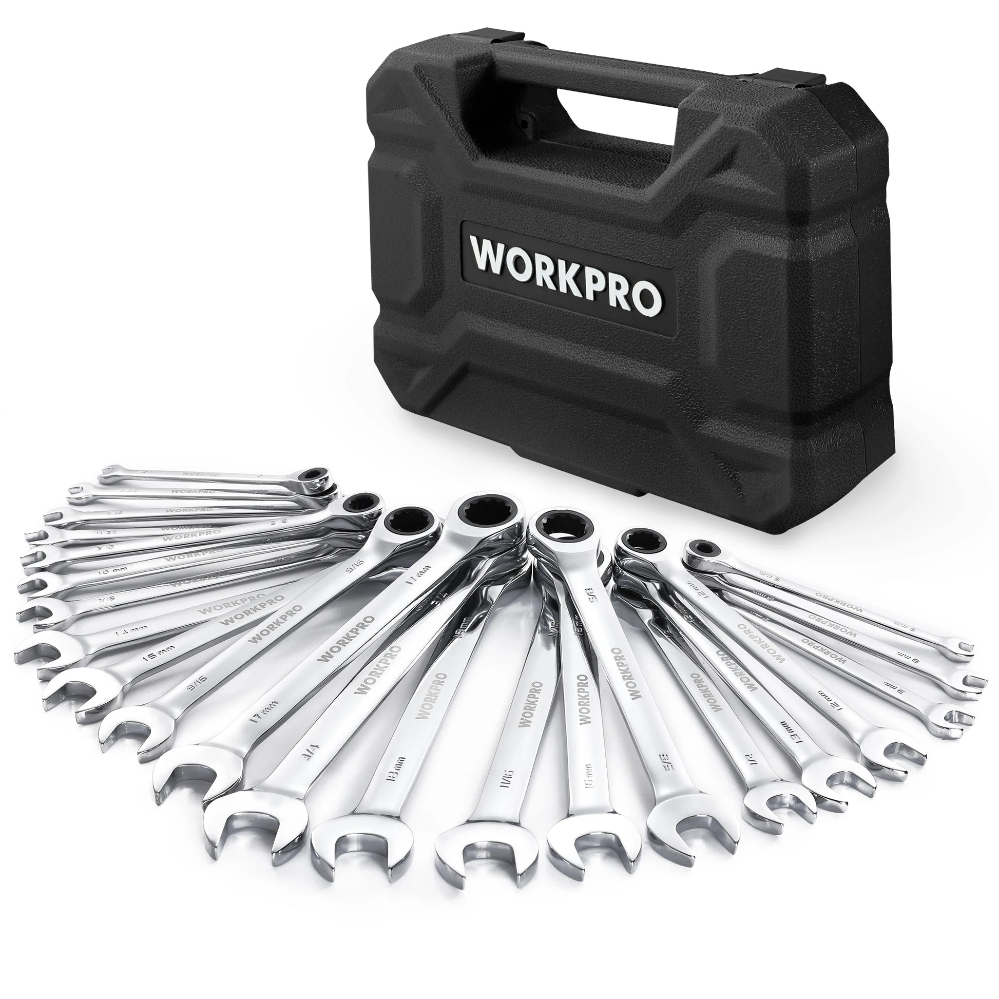 WORKPRO 23pc Ratcheting Wrench Set with Box ,72 Teeth Wrench with Box, Wrench Repair Tool Set